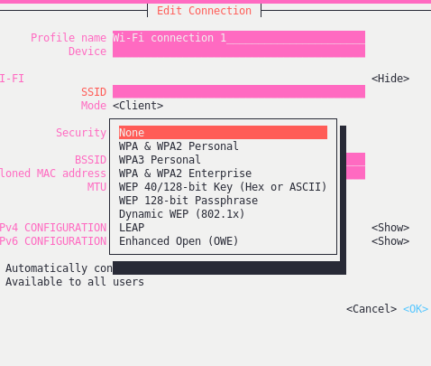 nmtui does not support WPA2 Enterprise nor WPA3?