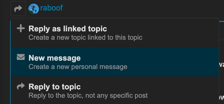 Replying via personal messages is easy here, for those who havenât seen the reply menu in the editor: