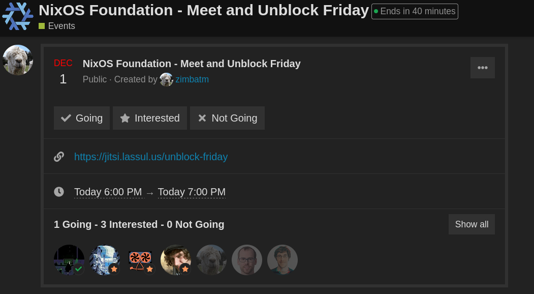 And @ron also offered to help. Ron helped revamp the NixOS Foundation, organized NixCon and has a lot of connections outside of the NixOS ecosystem. He is also the one who introduced me to this unblock philosophy.