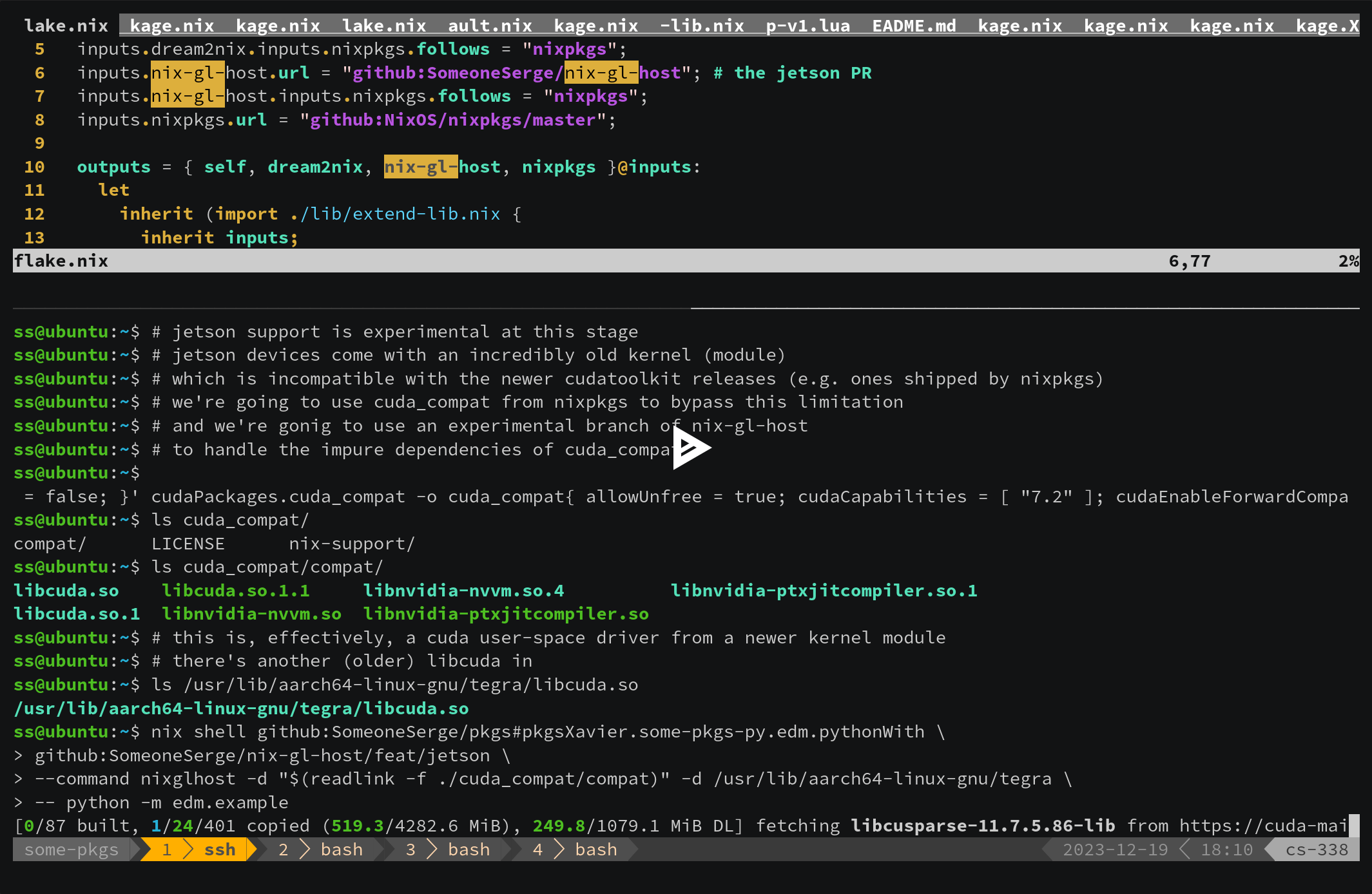 (View the recording at nom build -L github:SomeoneSerge/pkgs#pkgsCudaCluster.some-pkgs-py.edm.image - asciinema.org)