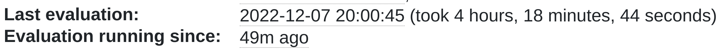 My āevaluationā has been running for over one hour now. I donāt see any downloads in the Hydra logs (journalctl -f) as I usually would.