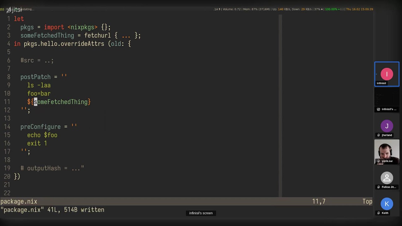 - @thufschmitt gave us a nice explanation about the Nix development process [Video recording]